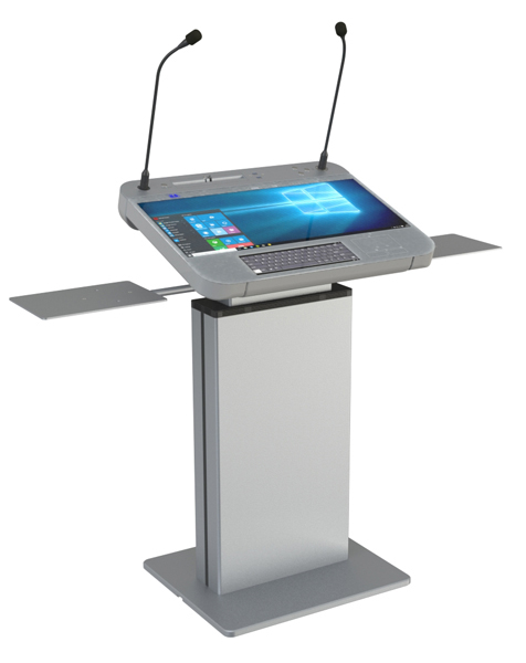 We launched our new concept of an intelligent lectern in the Synergy series. A single lectern head will accommodate many different inserts, from the latest generation of touch PC's, to our own integrated all-glass-top lecterns, as well as plain wooden or acrylic surfaces for a simple yet stylish non-technical lectern. It is an instant swap that lets you adapt to any meeting environment while your lectern connectivity remains constant.